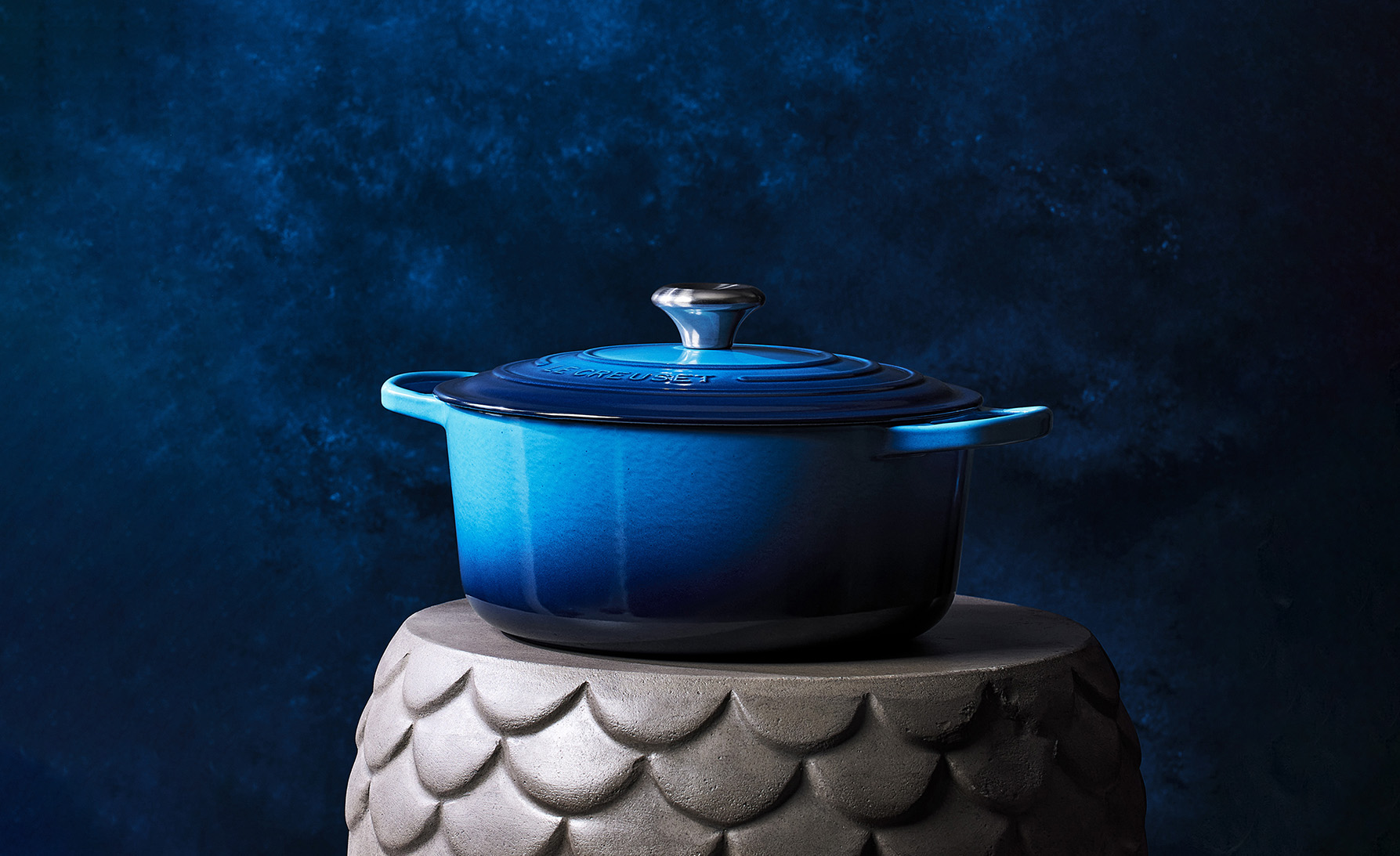 With a refreshing, vibrant tone that whisks you away, Le Creuset’s Azure evokes the feeling of dining under cool, clear skies on distant shores. Its rich blue hue is a breath of fresh air in any space with a bold quality that is timely for this transition into a shoulder season. Azure is a continuation of our deep dive into tonal palettes with its nuanced quality that expands the range of what colours can do, as well as the way that tones and shades of pure colours create deeper connections to places, feelings and styles.