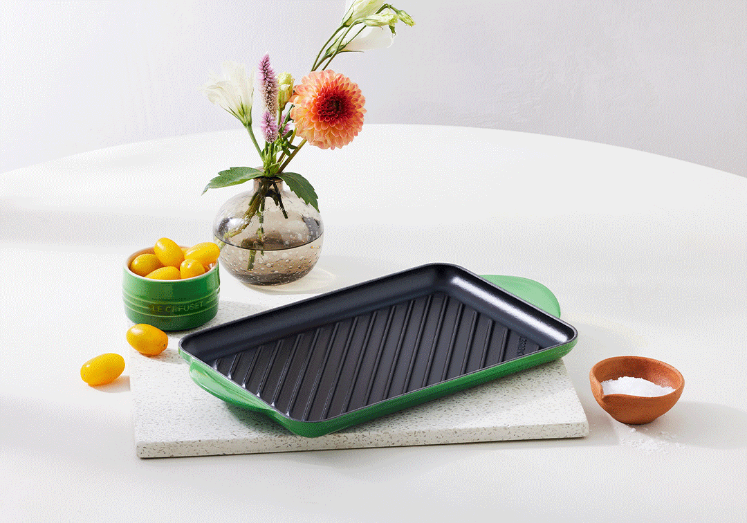 If you’re craving grilled pizza but can’t get outside due to the weather or lack of an outdoor grill, a Grill Pan pizza is the answer. The superior heat distribution and retention of our enamelled cast iron Grill Pans create a chewy, blistered crust with a subtle smoky flavour. In fact, Grill Pan pizza is quickly becoming our favourite way of cooking pizza indoors at home. It’s faster and easier than using a pizza stone, plus you can grill the toppings in the same pan, making cleanup a breeze. Read on for how you can perfect your indoor pizza grilling skills for a perfect pie, each and every time.