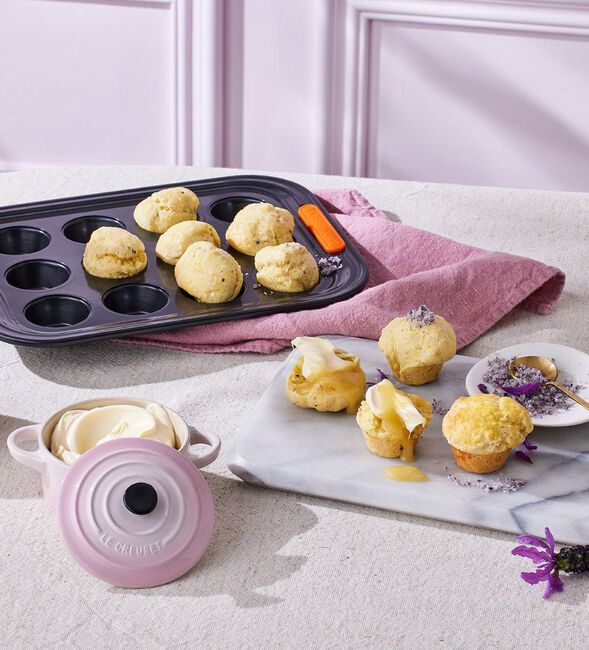 Preheat the oven to 200°C or 180°C fan-assisted. Lightly grease a Le Creuset 12 Cup Mini Muffin Tray.