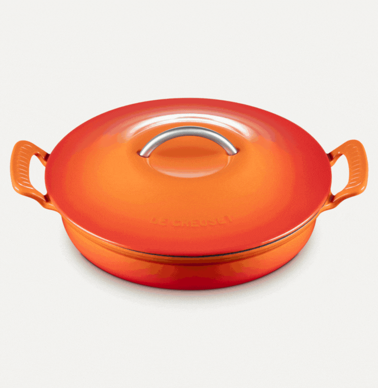 Inspired by archival design elements and reimagined for today’s kitchens, this collection features softened angles, open scalloped handles, and a refreshed stainless steel looped lid handle. The result is an assortment that is both modern and classic, capturing nostalgia while embracing the promise of the future.