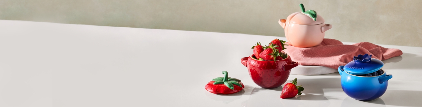 Sweeten up every moment with these figural fruit mini stoneware cocottes. Take your pick from nature’s sweetest shapes and add delightful charm to desserts, sides and more.